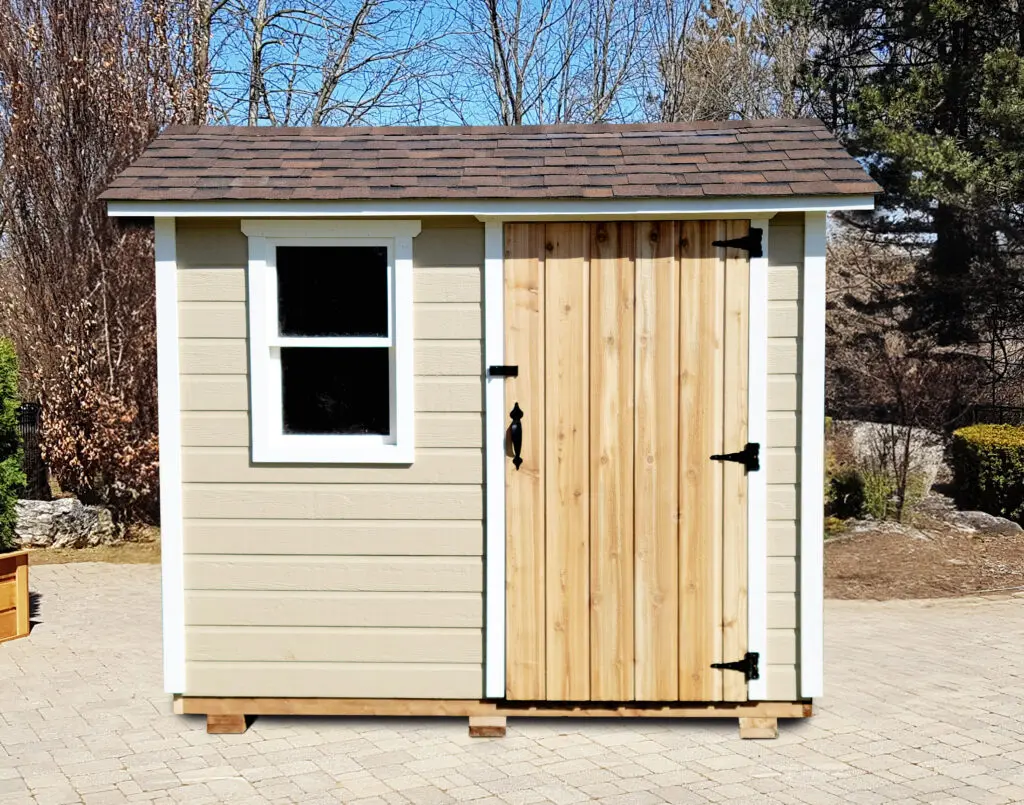 The Maple Series Traditional Shed embodies the look and feel of a handcrafted structure while maintaining the ease of a pre-cut kit. Designed for homeowners who value both beauty and simplicity, this model blends CanExel siding with natural pine trim, creating a warm, rustic aesthetic that complements any landscape. Available in 6×8 ft, 8×8 ft, and 8×12 ft, the Maple is versatile enough for garden storage, backyard workshops, or hobby spaces.